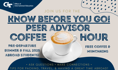 Calling all committed students for this Summer and Fall! Come meet the Education Abroad Peer Advisors for the Pre-Departure Coffee Hour to ask all your burning questions in preparation for your study abroad experience. Stop by for free coffee and munchkins, practical advice, and new connections. We can't wait to see you there!