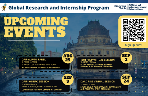 Monday August 25, 2025 2:00PM - 3:00PM Location Location Rafael Bras Meeting Room - John Lewis Student Center Connect with former/current GRIP interns about their experience finding, applying for, and completing a global research or internship opportunity! Related Link RSVP to Event Event Category Invited Audiences